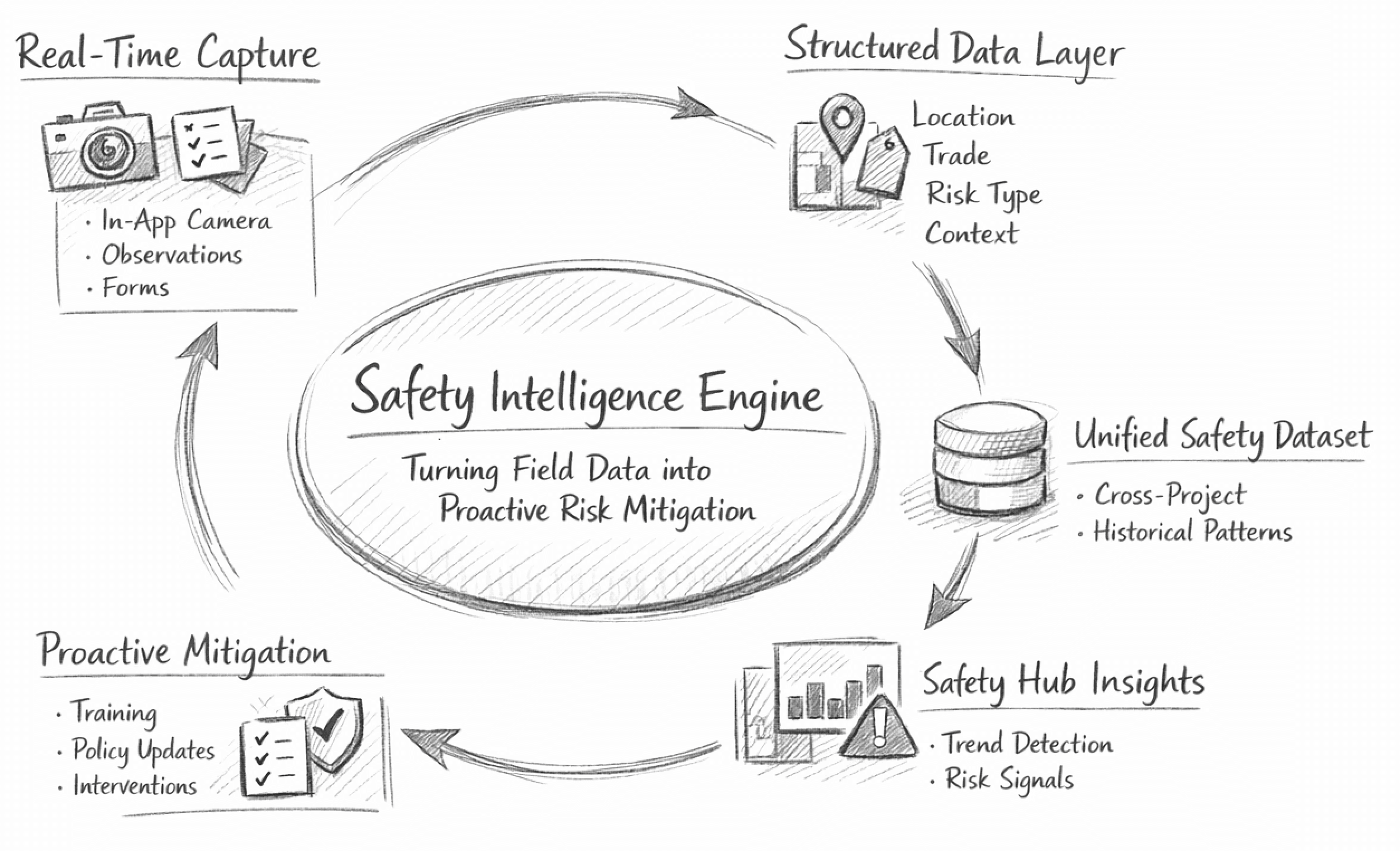 Cross-platform data entry (web + mobile), Safety Hub, Media evolution