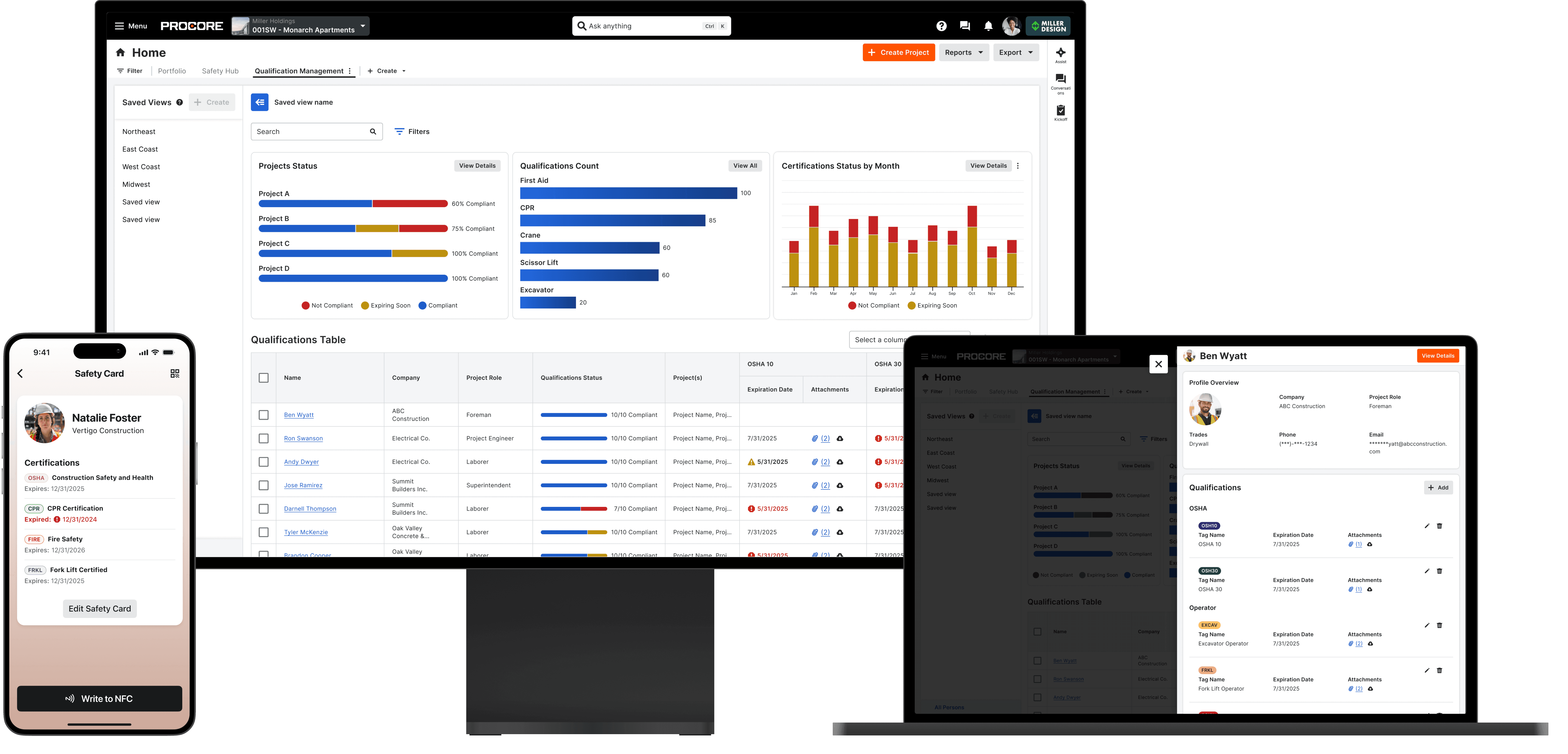 A net-new tool for tracking worker qualifications and certifications — expiration dates, compliance status, and qualification details — all in a single view. Supervisors can monitor workforce readiness from the web dashboard and update profiles with ease.