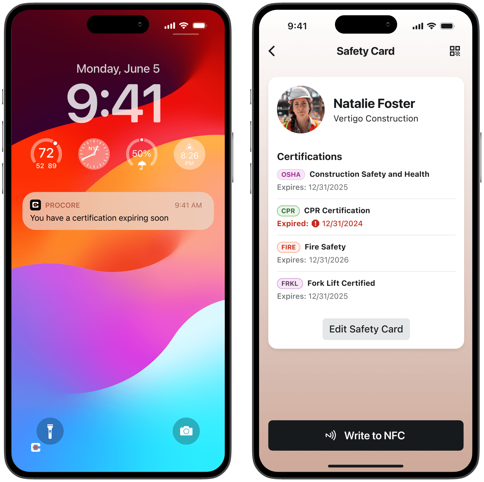 A mobile companion to the Qualifications Hub. Safety Cards give field team members instant access to their certification details, while QR and NFC stickers let anyone on site scan to verify a worker's qualifications in real time.